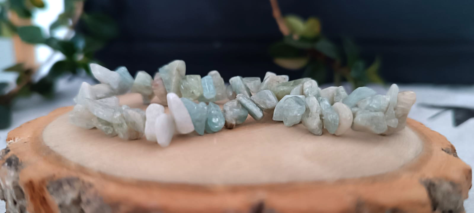 A Água-marinha, em seus tons translúcidos que vão do azul-claro ao verde-azulado, evoca as águas cristalinas do mar calmo, trazendo serenidade, leveza e pureza ao espírito. É uma pedra que conecta à energia do fluxo, da clareza emocional e da comunicação sincera. Tradicionalmente ligada ao chakra laríngeo, ela favorece a expressão da verdade interior, o equilíbrio emocional e a harmonia nos relacionamentos. Seu brilho aquoso simboliza limpeza energética e proteção, sendo desde a Antiguidade considerada uma pedra de viajantes e navegadores, usada contra os perigos do mar.